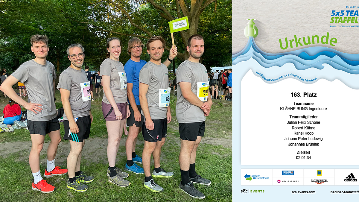Nach zwei Jahren der Abstinenz konnte endlich wieder die langersehnte 5 x 5 km TEAM-Staffel im Berliner Tiergarten gestartet werden. Bei schönstem Wetter haben wir unsere Läufer Julian, Robert, Rahel, Peter und Hristo angefeuert und im Ziel begrüßt. Besonderer Dank gebührt unserem neuen studentischen Mitarbeiter Hristo, der gleich an seinem ersten Tag bei uns für unseren verletzten Teamkapitän Johannes eingesprungen ist. Das war wahres Express-Onboarding!