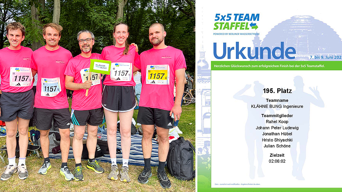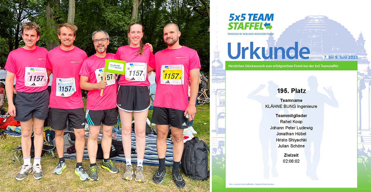 Wie jedes Jahr, so waren wir auch dieses wieder am 7. Juni 2023 bei der 5 x 5 km TEAM Staffel im Berliner Tiergarten dabei. Und wie jedes Jahr schien die Sonne und wurde unser Team von den Kollegen angefeuert und im Ziel gebührend gefeiert. Und wie (fast) jedes Jahr, so ist auch dieses Jahr ein ganz neuer Kollege mitgelaufen. Jonathan ist erst seit Mai in unserem Team, hat aber mit der gleichen Begeisterung wie die Kollegen den Staffelstab ins Ziel getragen.