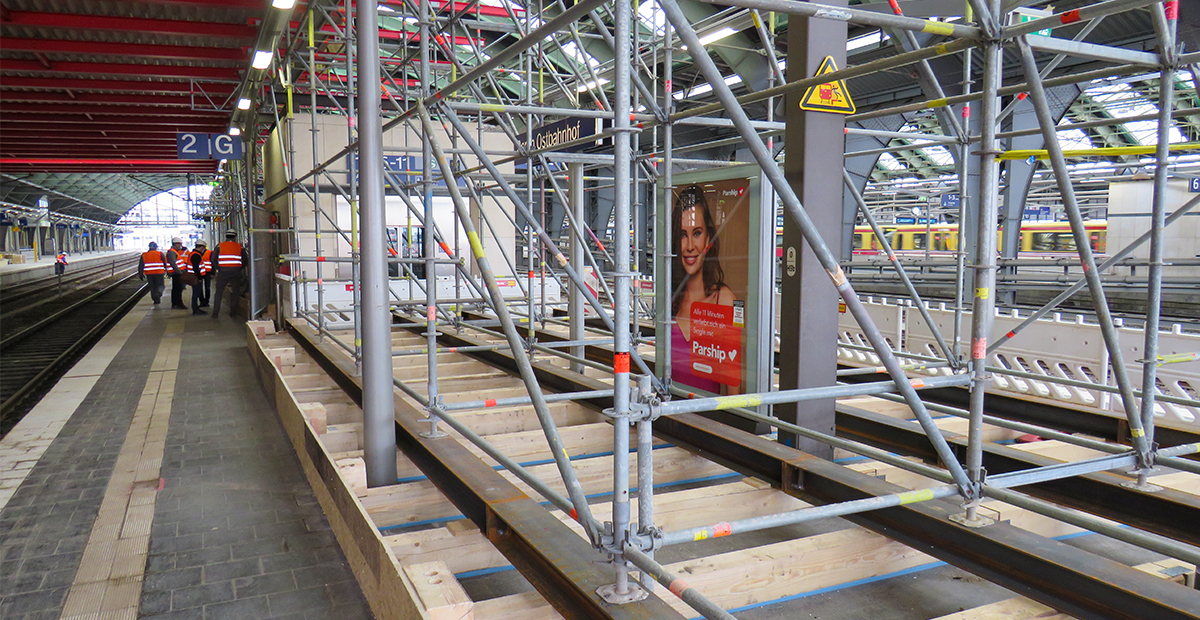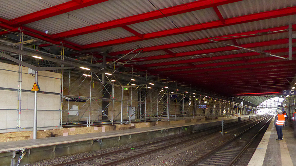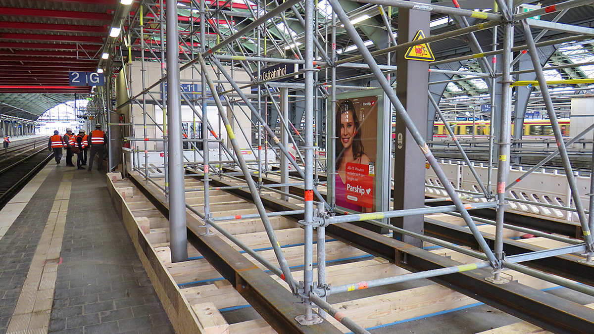 Anfang März wurde mit den Bauarbeiten im Rahmen des 2. Bauabschnitts der Modernisierung des Berliner Ostbahnhofs begonnen. Im Rahmen des 1. Bauabschnitts wurde zwischen 2010 und 2012 die Nordfassade des Bahnhofs neu verglast. Nun werden die Dächer der rund 85 Jahre alten Gleishallen unter laufendem Bahnbetrieb saniert.