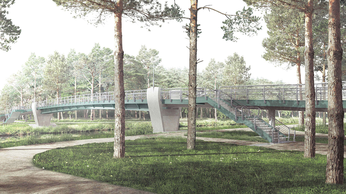 Die Fuß- und Radbrücke Schmöckwitzwerder, die von uns geplant wurde und kurz vor Fertigstellung steht sowie die Neue Fahlenbergbrücke, für die wir die Widerlager der Behelfsbrücke und Umkonstruktion der Betonfahrbahnplatte statisch berechnet haben. Beide Brücken befinden sich in Treptow-Köpenick.