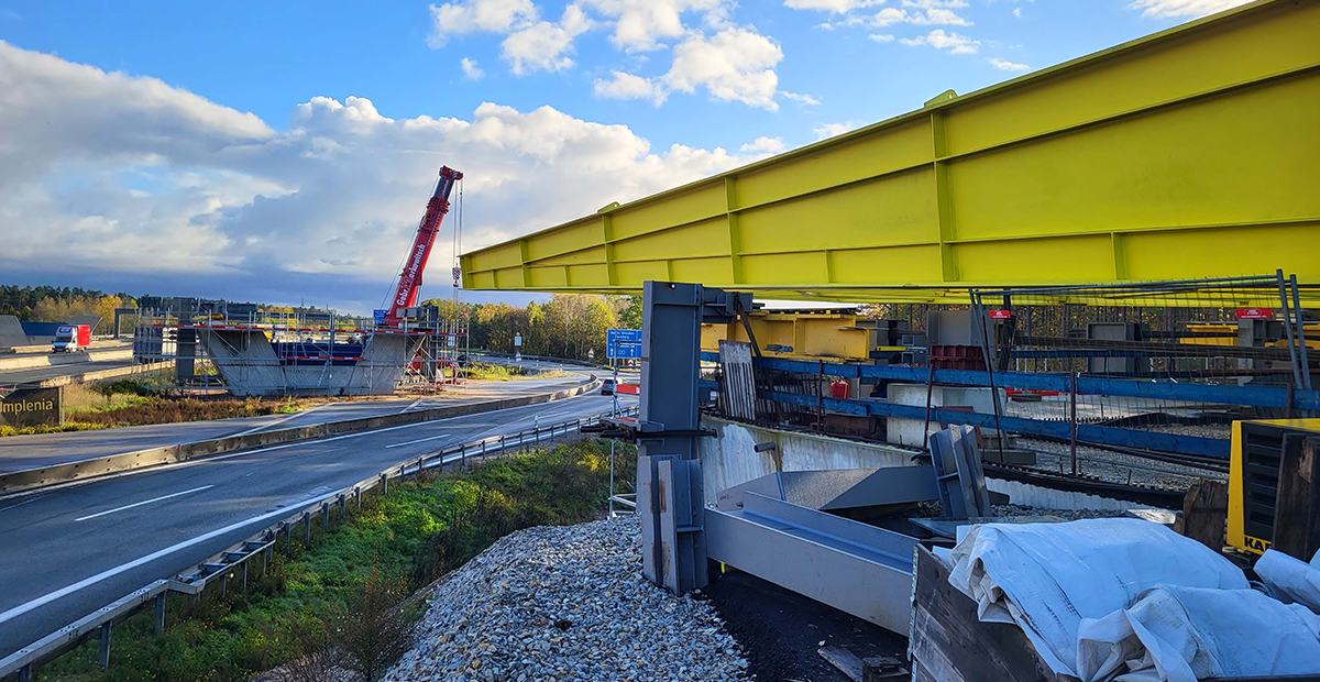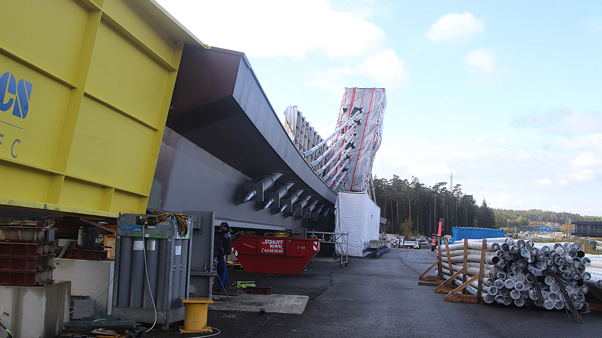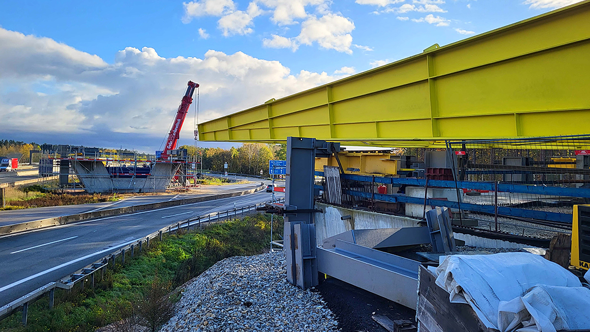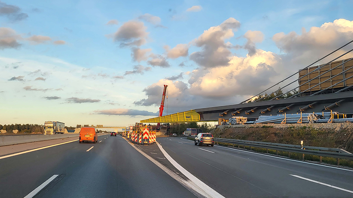 Im Oktober hat der erste Verschub des Overflys stattgefunden. Der Overfly ist ein 588 m langes Überführungsbauwerk, das am Autobahnkreuz Nürnberg-Ost die A9 und die A6 kreuzt.