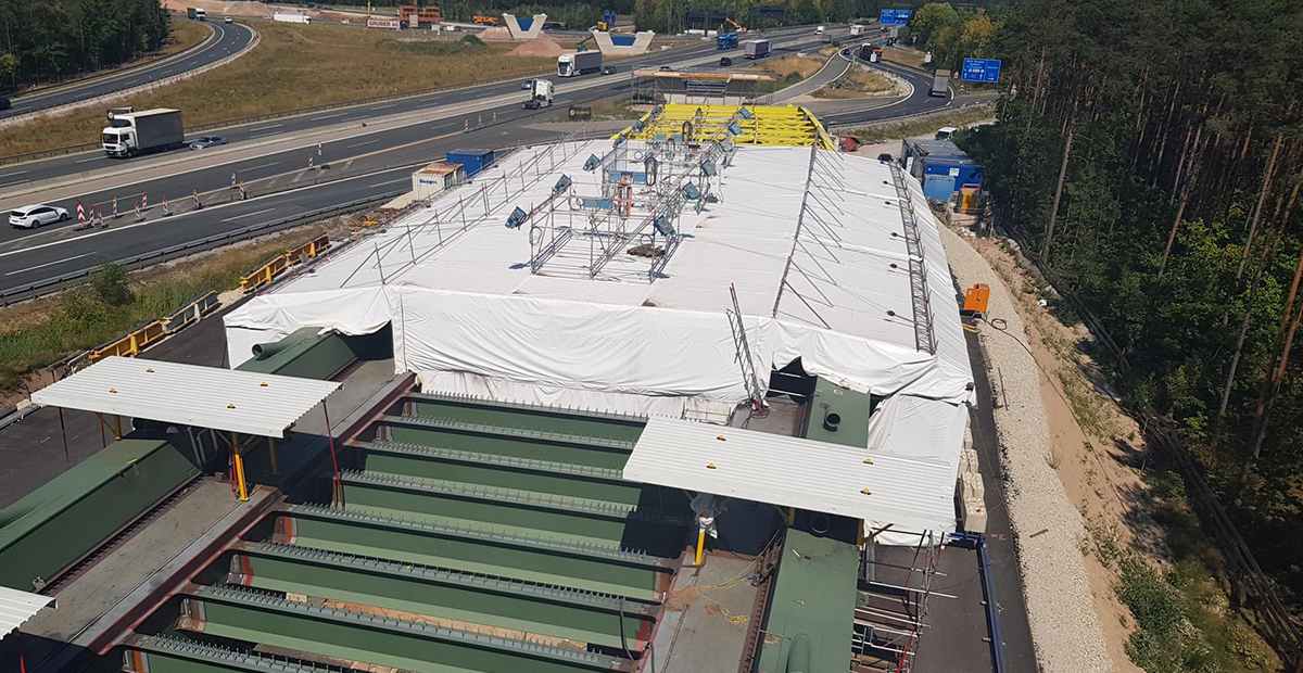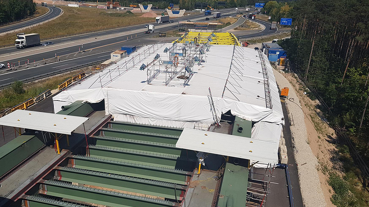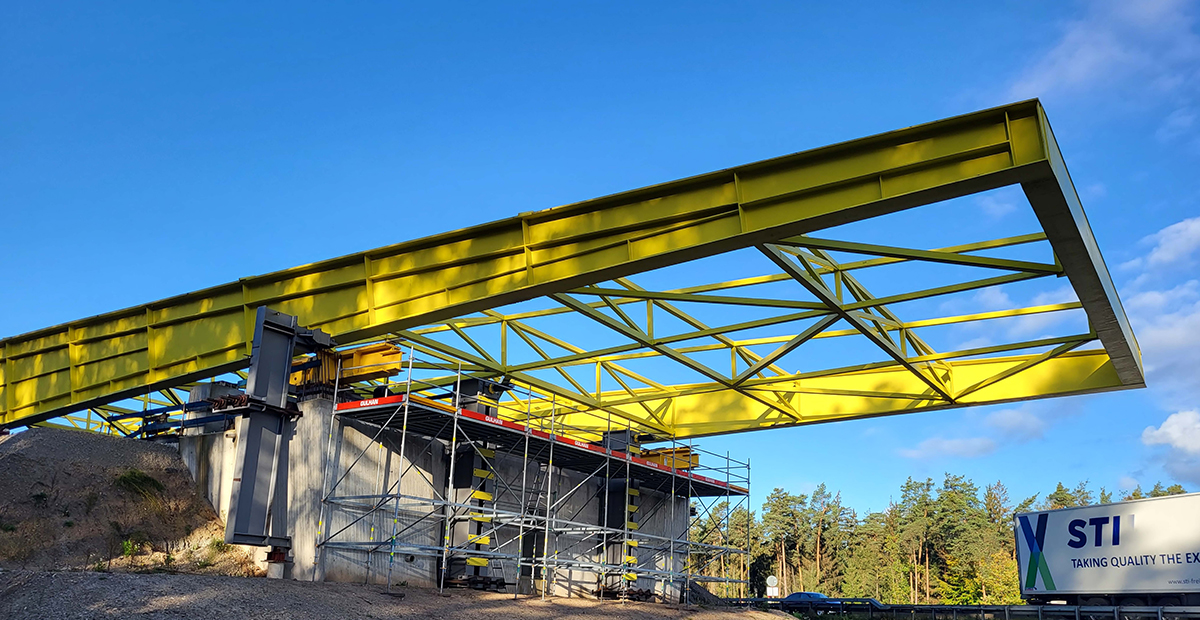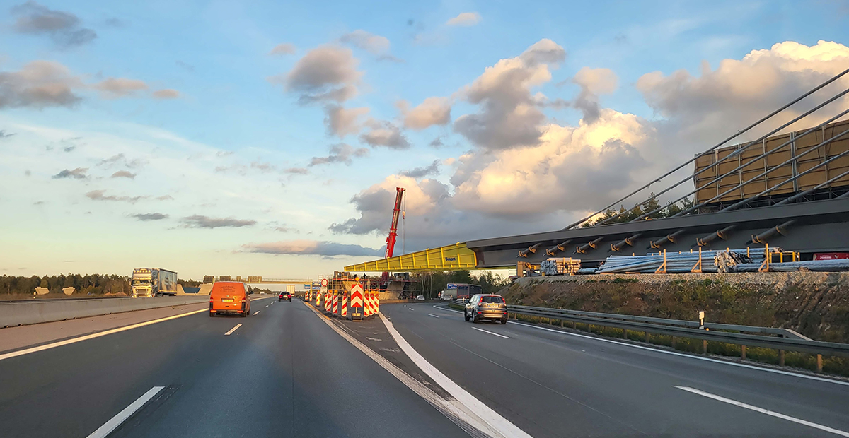 Im Oktober hat der erste Verschub des Overflys stattgefunden. Der Overfly ist ein 588 m langes Überführungsbauwerk, das am Autobahnkreuz Nürnberg-Ost die A9 und die A6 kreuzt.