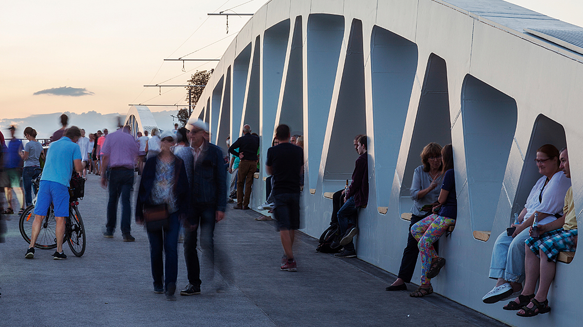 Die Konzeptidee für die Brücke stammt von KREBS + KIEFER Ingenieure GmbH, Karlsruhe in Zusammenarbeit mit Knight Architects, Großbritannien. KLÄHNE BUNG war für die Ausführungs- und Montageplanung verantwortlich.