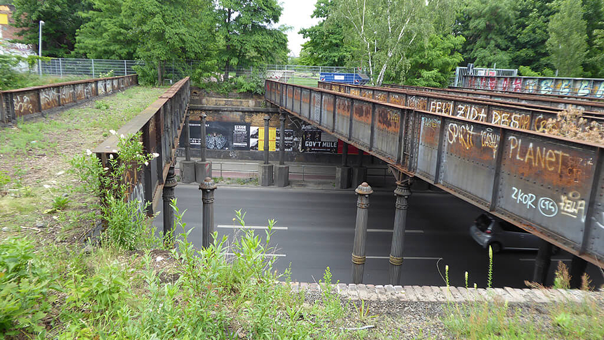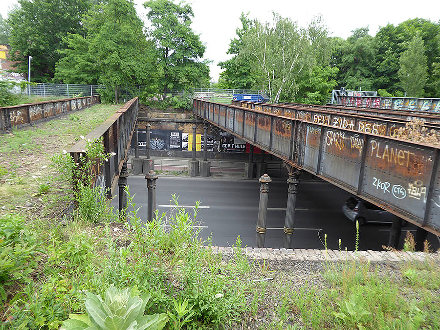 Fünf Brücken werden derzeit umgebaut, um als Geh- und Radwegbrücken die beiden anliegenden Parks "Park am Gleisdreieck" und den "Flaschenhalspark" zu verbinden und damit Bestandteil des Radfernweges Berlin - Leipzig zu werden. Bei der Umplanung und gegenwärtigen Bauausführung sind neben den verkehrlichen und normativen Forderungen vor allem Belange des Denkmalschutzes zu berücksichtigen.