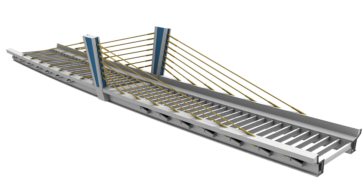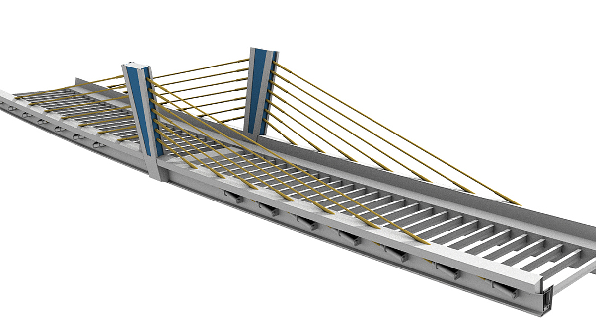 Im Juni wurden die Bauleistungen für den Neubau des BW 3-1, Overfly Rampe Heilbronn - Berlin im Zuge des Umbaus des Autobahnkreuzes Nürnberg-Ost vergeben. Dieses Projekt haben wir in Planergemeinschaft mit der BUNG Ingenieure AG vom Vorentwurf bis zur Vergabe geplant und begleiten jetzt die Bauphase als Planer für die ausführende Firma Stahlbaufirma Donges. Auch diese Planung wurde teilweise in 3D umgesetzt, um u.a. die statisch-konstruktiven Anforderungen der Stahlpylone, die sich aus den Kabelanschlüssen, dem Montageprozess und der Begehbarkeit für Wartungsarbeiten ergaben, so effizient wie möglich zu gestalten.