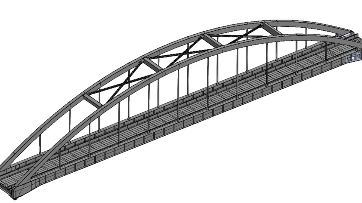 Bereits 2020 begonnen, steht die Ausführungsplanung für die EÜ Herne kurz vor dem Abschluss. Der Ersatzneubau, der durch den 6streifigen Ausbau der A 43 notwendig wurde, besteht aus einer Stabbogenbrücke und einem WiB-Überbau. Den Überbau der Stabbogenbrücke haben wir komplett in 3D-Planung umgesetzt. Mit Hilfe des von uns erstellten 3D-Modells konnten so bereits frühzeitig Kollisionspunkte erkannt und Lösungswege entwickelt werden.