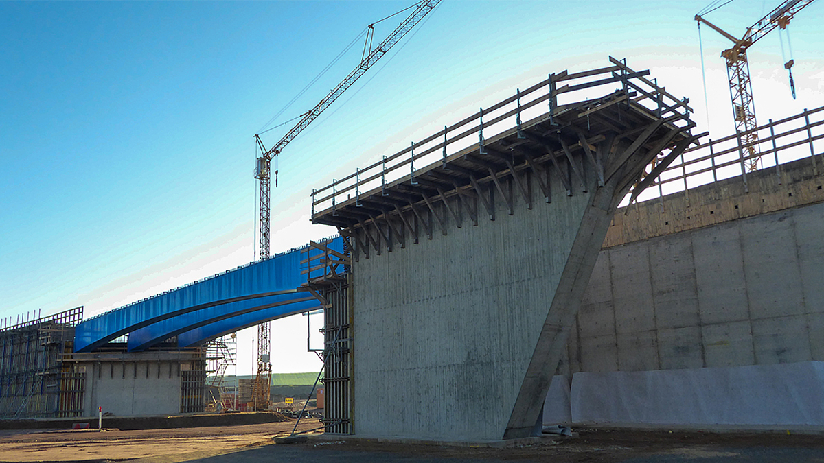 „Die anspruchsvolle Geometrie durch die Krümmung der Brücke im Grundriss sowie der Aufweitung der Fahrbahn in Achse 20 war die besondere Herausforderung in diesem Projekt. Hinzu kam eine aufwendige Gestaltung der großen, hohen Kastenwiderlager und der Stahlträger, welche sowohl im Grundriss als auch in der Ansicht gekrümmt und gevoutet sind. Durch die enge Abstimmung im Team ist es uns gelungen, hier Lösungen zu finden“, sagt Kerstin Boos, die bereits seit über 10 Jahren als Konstrukteurin bei KLÄHNE BUNG tätig ist.