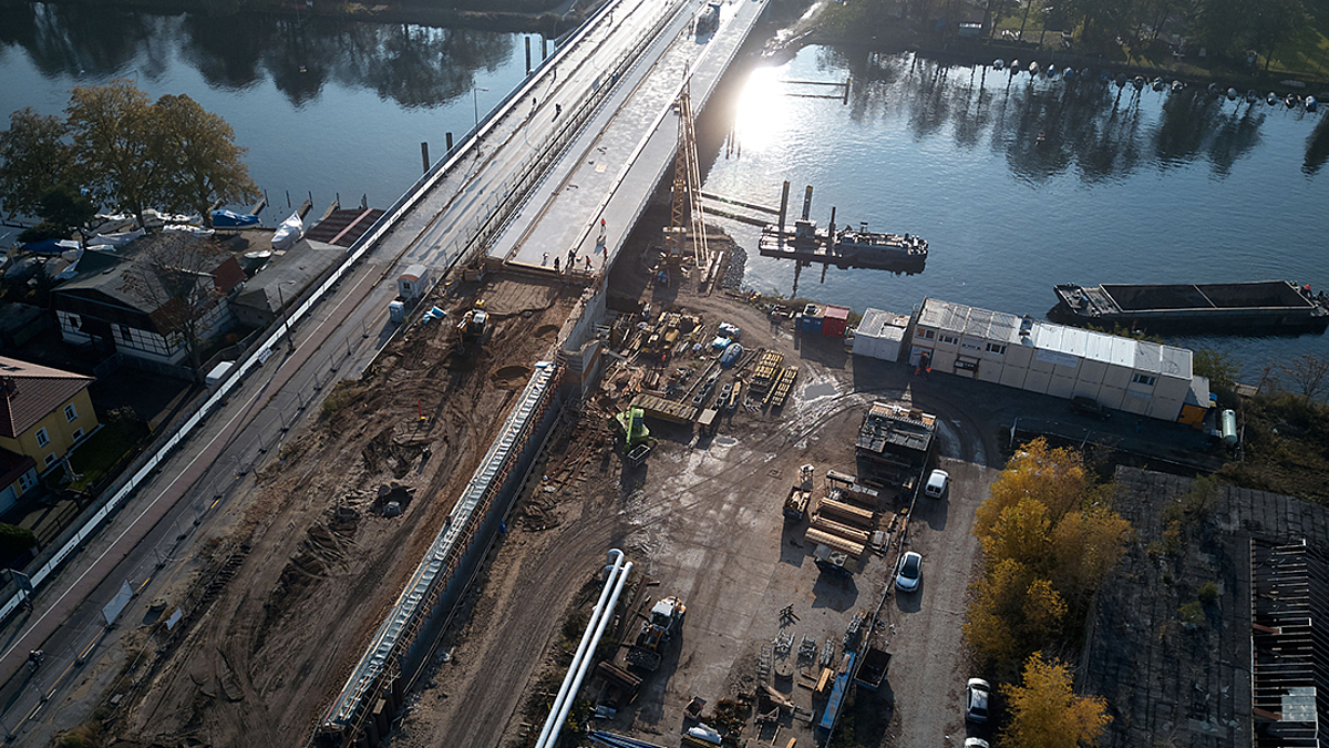 Fast zehn Monate war die Salvador-Allende-Brücke in Berlin-Köpenick vollständig gesperrt. Ab dem 22.11.2019 ist eine Hälfte des Neubaus für den Verkehr freigegeben.