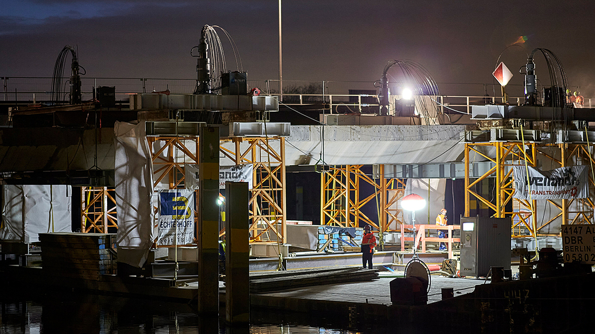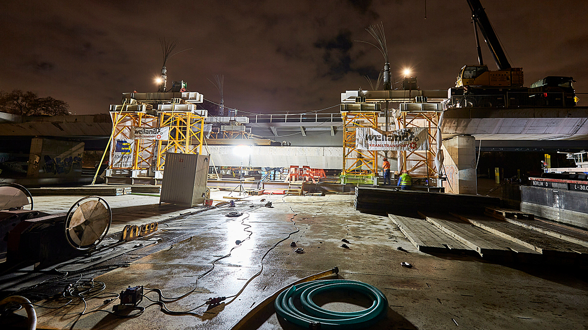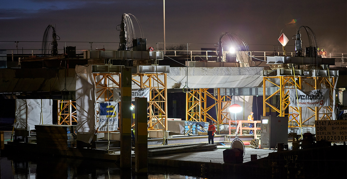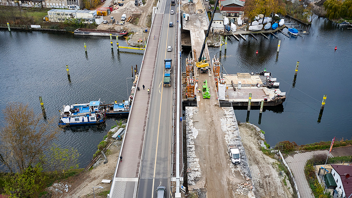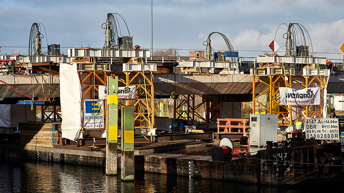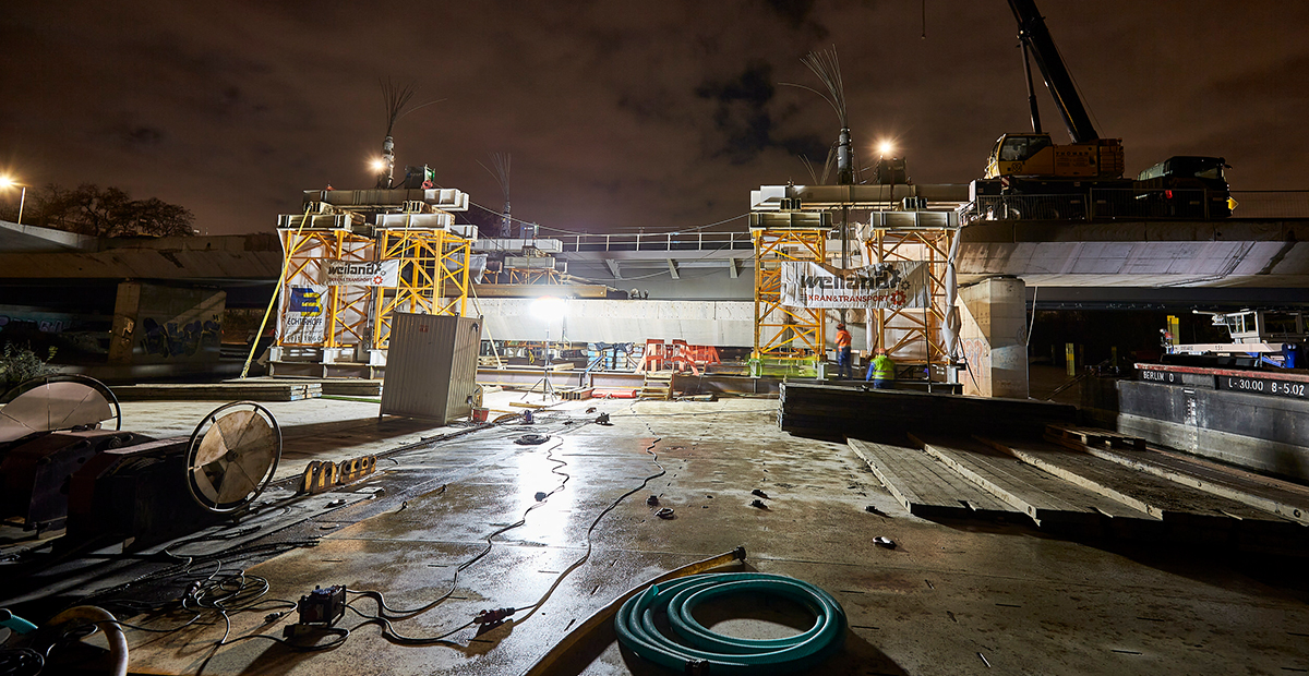 Anfang Dezember wird das nördliche Stromfeld analog ausgebaut und kurze Zeit später folgt dann der Rückbau der Mittelpfeiler und der Fundamente. Die Wasserstraße (Spree) wird während dieser Zeit temporär vollständig gesperrt sein.