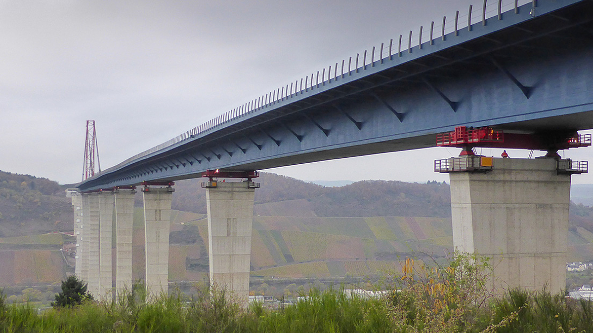 For nearly ten years we have worked on the construction and assembly planning of its superstructure, and today, the High Moselle Bridge is finally open for traffic. At a length of 1,702.35 m and a height of approximately 160 m, it is one of the largest bridge building projects in Europe.