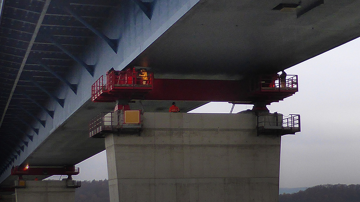 Die Planung und Realisierung einer solchen Großbrücke ist in jeglicher Hinsicht herausfordernd. Insbesondere der komplizierte Einschubvorgang mit einer in Europa bis dahin noch nicht überwundenen Einzelstützweite von ca. 210 m als freier Kragarm stellte an die Planer und Bauausführenden besondere Anforderungen.