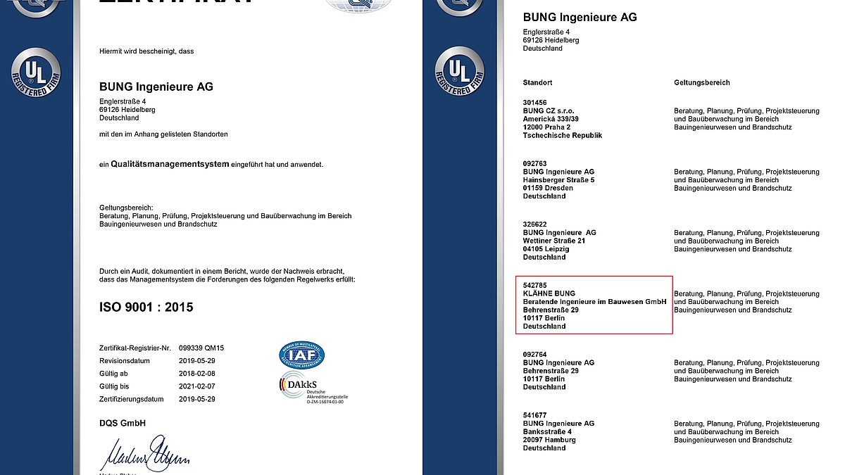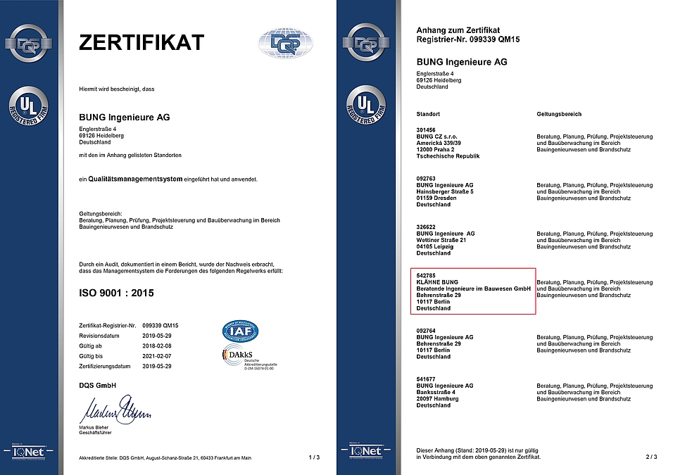 KLÄHNE BUNG erhält Zertifizierung nach DIN EN ISO 9001:2015