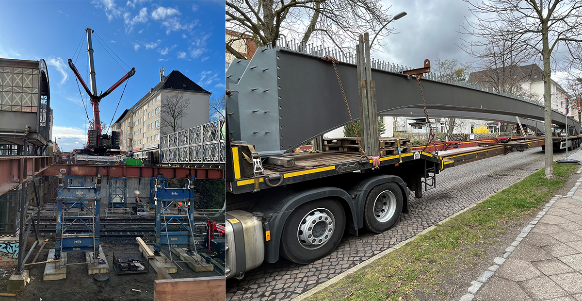Unter Vollsperrung der S- und Fernbahnstrecke ist am letzten stürmischen Märzwochenende die Montage der neuen Brückenträger und Fertigteilelemente für die Moltkebrücke am S-Bahnhof Botanischer Garten in Berlin erfolgt.