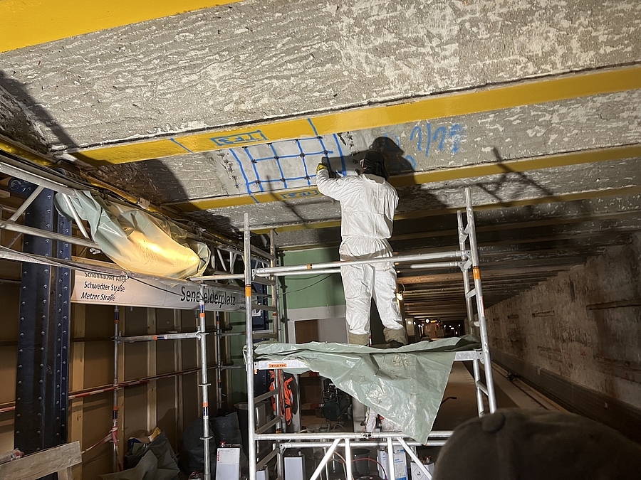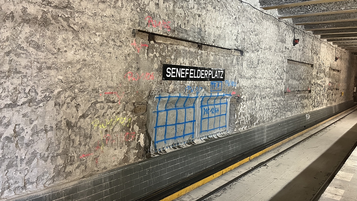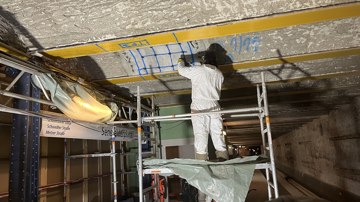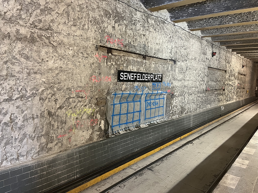 Im Zuge der aktuellen Baumaßnahmen am U-Bahnhof Senefelderplatz haben wir begleitend eine Zustandserfassung des Bauwerks durchgeführt. Dabei wurden Risse erfasst und Schadensverdachtsflächen lokalisiert. Nach der Kartierung der Schäden und der anschließenden Auswertung wurde eine Empfehlung für die Instandsetzung entwickelt, wonach umfangreiche Betoninstandsetzungsmaßnahmen erforderlich sind.