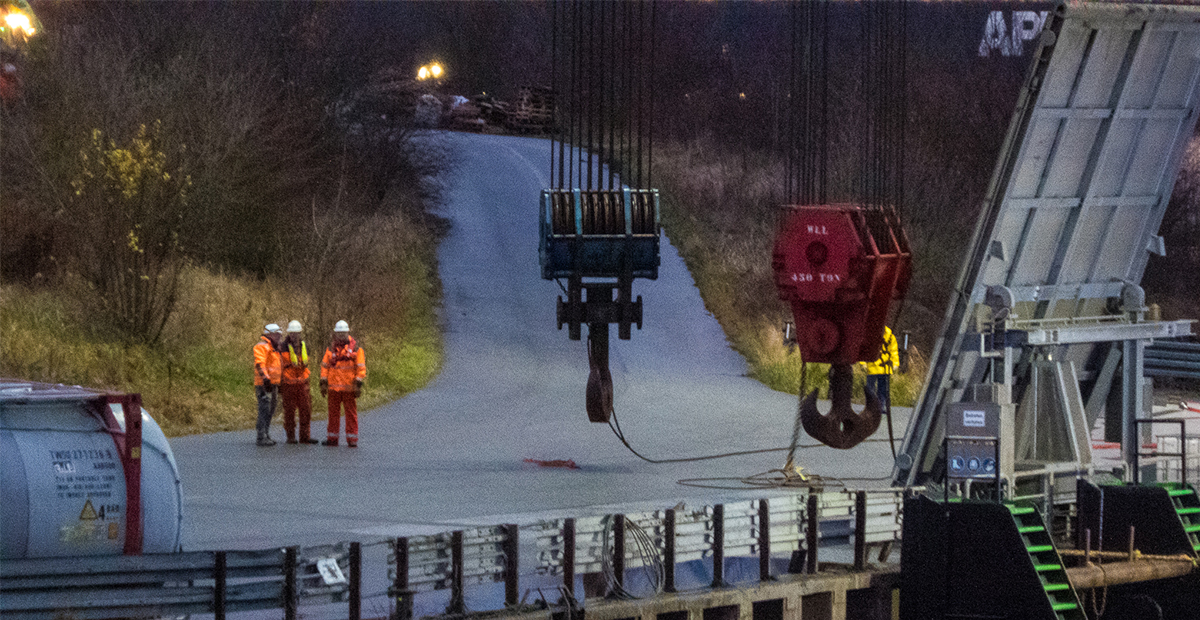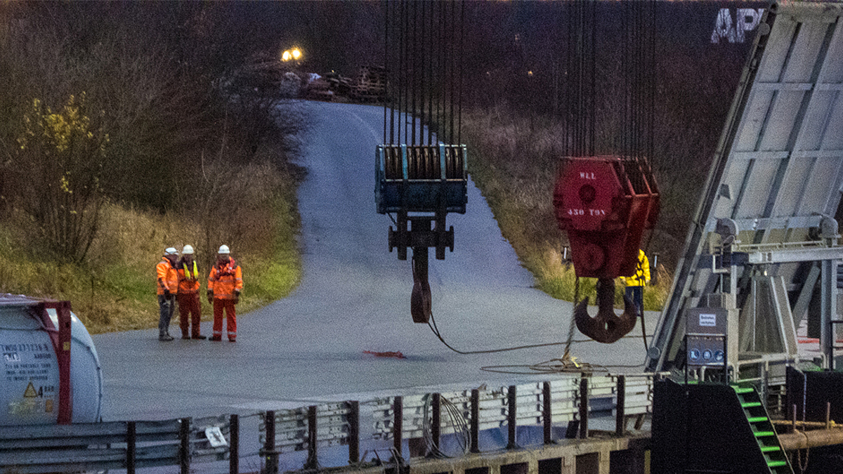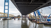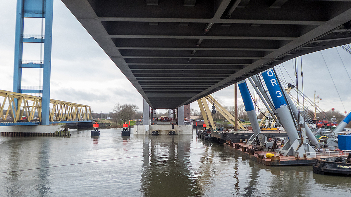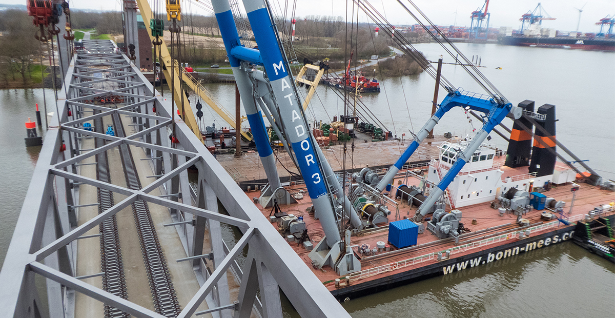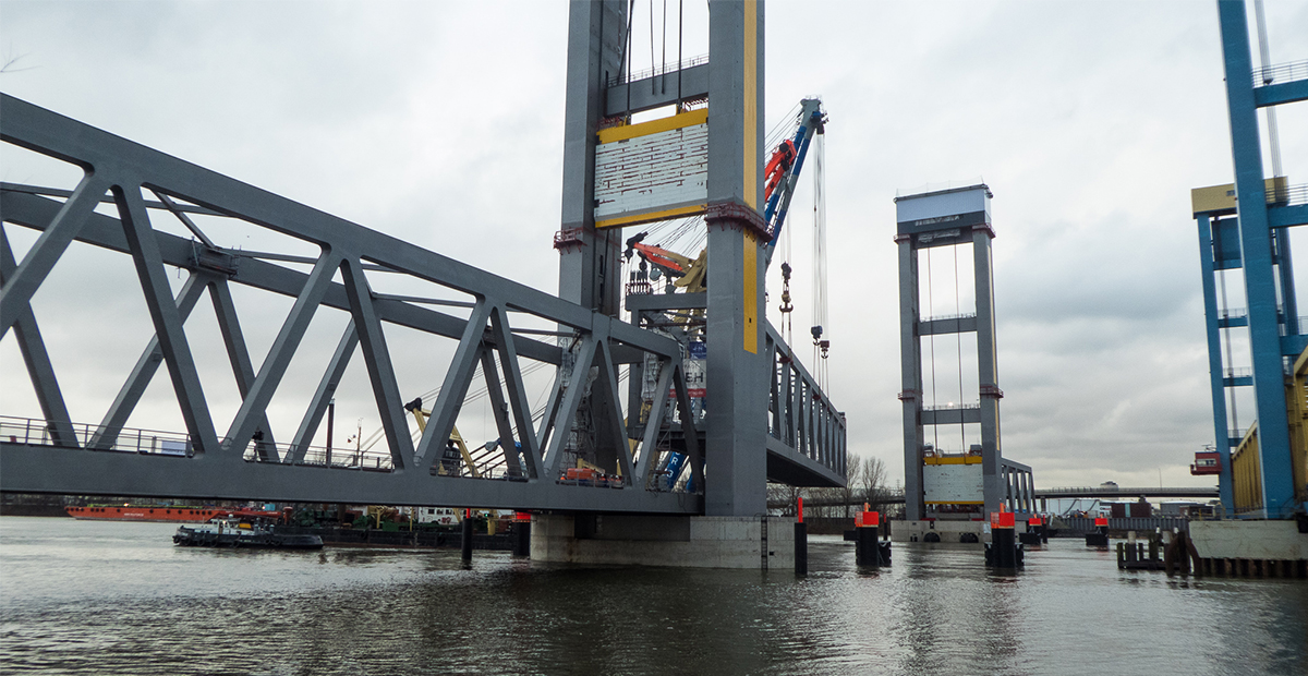Neue Bahnbrücke Kattwyk – Das Hubfeld ist an seinem Platz