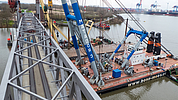 Wie zuvor die Pylone wurde auch das Hubfeld in Cuxhaven hergestellt und dann per Schiff nach Hamburg transportiert und montiert. Johannes Richter, der seit gut 14 Monaten an dem Projekt mitgearbeitet hat, ist begeistert: „Es ist toll zu sehen wie das Montagekonzept, an dem ich mit meinen Kollegen so lange gekniffelt habe, nun in die Tat umgesetzt wird.“