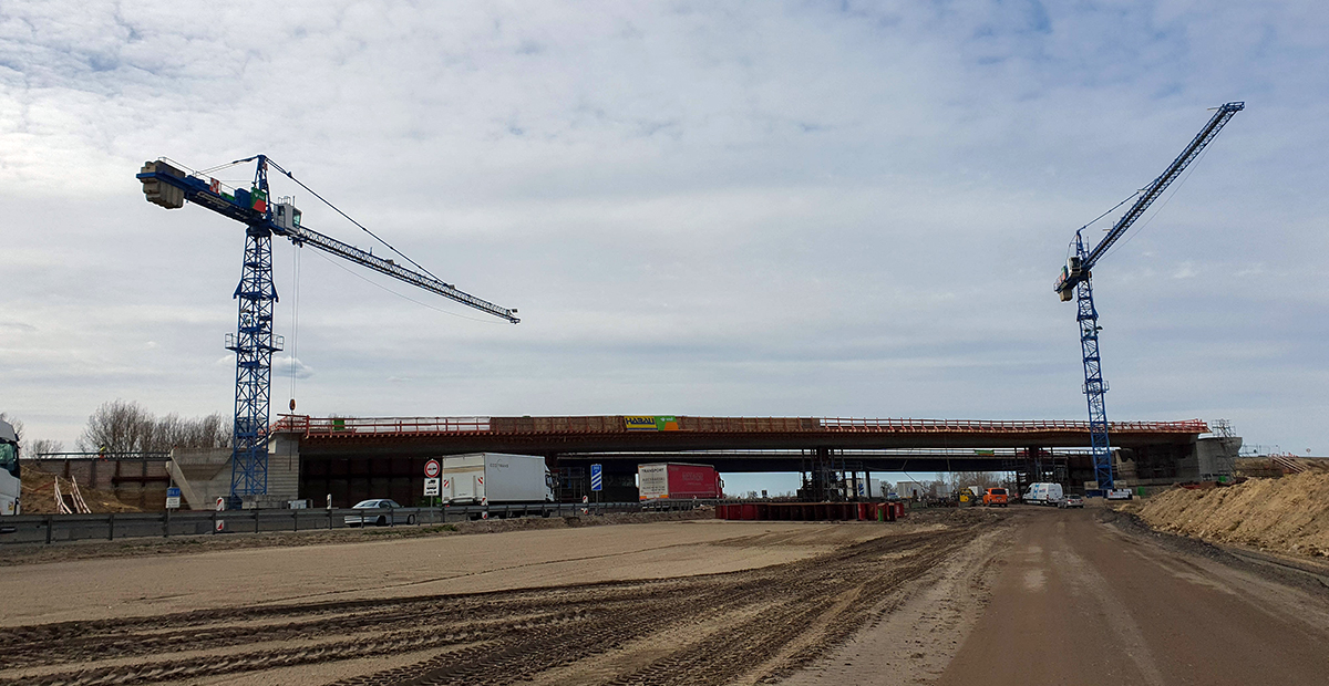 Neben dem Ausbau der A 10 und der Erneuerung der A 24 wurden im Rahmen des ÖPP-Projektes auch eine Brücke abgebrochen und 39 Brückenbauwerken errichtet, davon 29 Ersatzneubauten und zehn Neubauten. Hinzu kommen sieben Anschlussstellen, sechs Park- und WC-Anlagen sowie zahlreiche Verkehrszeichenbrücken und Lärmschutzwände und -wälle auf einer Länge von ca. 20 Kilometern. Dr. Thomas Klähne war mit der statisch-konstruktiven Prüfung von drei Brückenbauwerken und zahlreichen Lärmschutzwänden, Verkehrszeichen-Brücken sowie -Auslegern beauftragt.