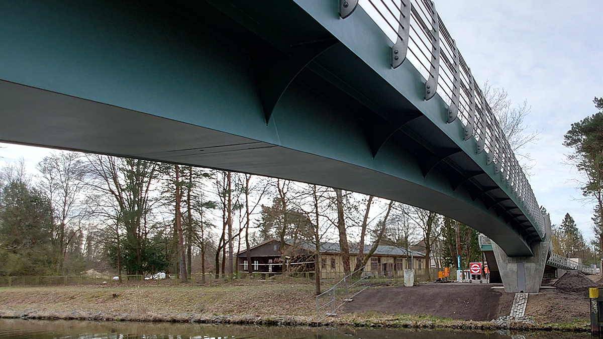 Die von uns geplante Brücke ersetzt das vorhandene Brückenbauwerk, das keine barrierefreie Überquerung des Kanals zuließ. Das Bauwerk hat eine Gesamtlänge von 176 m, wovon knapp 41 m zur eigentlichen Kanalbrücke gehören.