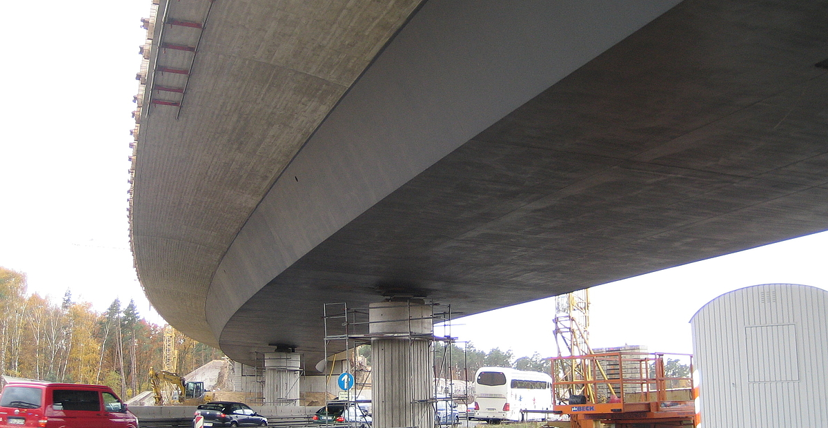 Neubau eines "Überfliegers" im Zuge des Ausbaus des Autobahndreiecks Nuthetal. Anschluss der BAB A10 an die BAB A115 in Richtung Berlin als vierfeldrige Stahlverbundbrücke mit einer Länge von 156 m. Der Überbau ist als zweizelliger Stahlverbundquerschnitt mit einer Betonfahrbahnplatte ausgebildet. Der Überbau wird in den Pfeilerachsen punktförmig gelagert, Torsionsmomente werden durch die Krümmung des Bauwerkes bzw. über die Widerlager abgetragen.
