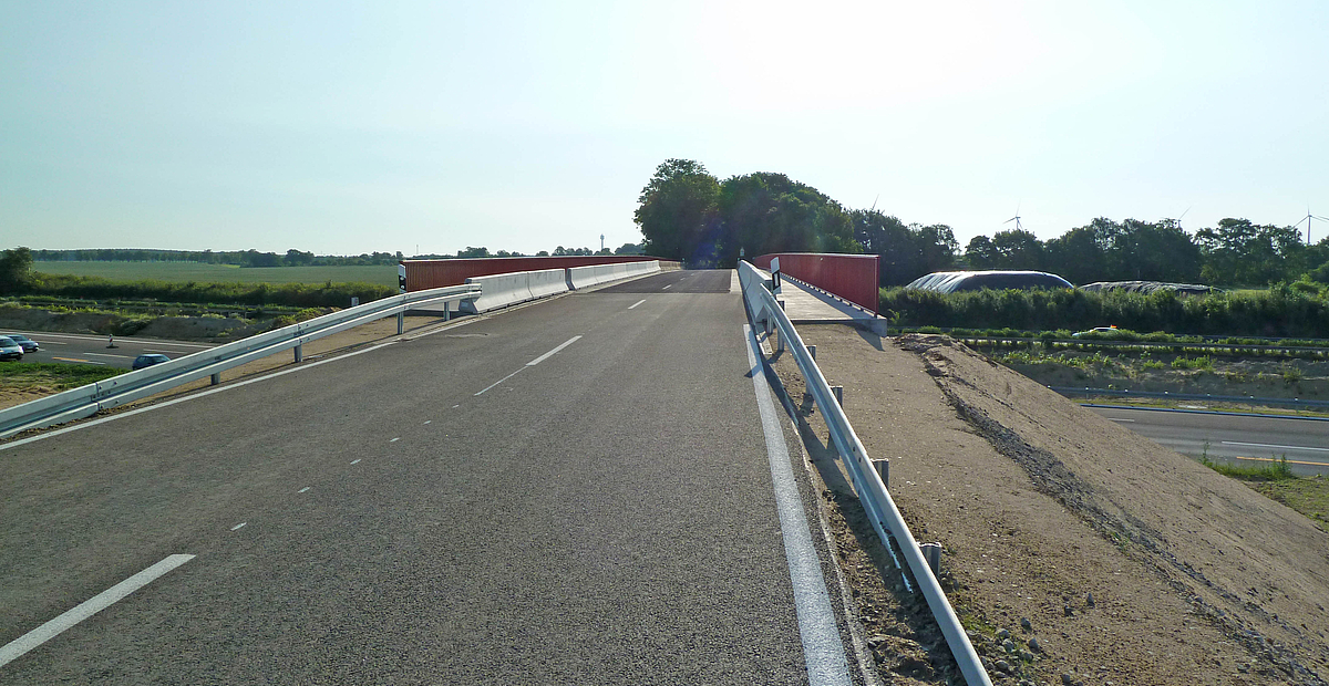 Die Brücke kreuzt die BAB A11 in einem Winkel von 74,112 gon, die Konstruktionshöhe beträgt 1,64 m in Brückenmitte und steigt bis 2,27 m an den Rahmenstielen an.