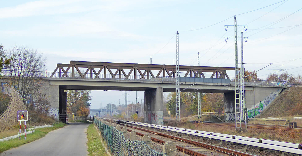 Für den Ersatzneubau der Lindenhofbrücke ist eine Behelfsumfahrung erforderlich. Die Behelfsbrücke überführt die B 109 und einen Wirtschaftsweg über Bahnanlagen des Berliner Außenrings.