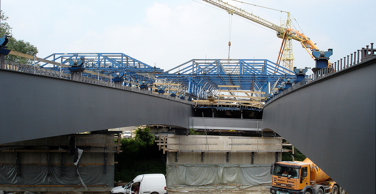Die Überbauten wurden gemäß einem Sondervorschlag ausgeführt, der eine Optimierung des ausgeschriebenen Verbundquerschnittes vorsah, die Konstruktionsstahltonnage konnte dabei auf 170 kg/m² Brückenfläche reduziert werden.