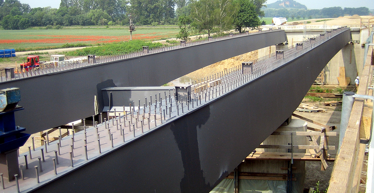 Zwei Stahlverbundbrücken als Dreifeld-Bauwerke mit dichtgeschweißten Kleinkästen mit Ortbetonfahrbahnplatte im Verbund