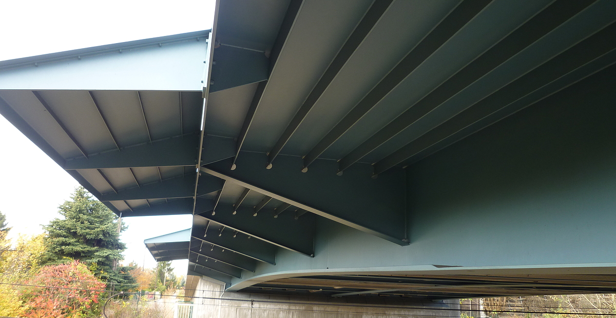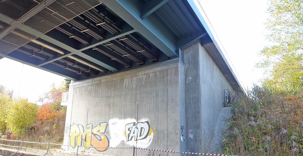 Der Überbau ist als Einfeldträger (Trägerrost in Stahlbauweise) mit 3 Haupt- und 7 Querträgern ausgebildet; eine orthotrope Platte bildet die Fahrbahn. Aufgrund von Gradientenführung und Lichtraumprofil war die Minimierung der Bauhöhe besonders anspruchsvoll.