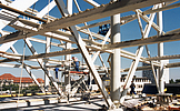 Die Gurte der Fachwerkscheiben sind auf Druck und Biegung beanspruchte Kammerbetonträger. Die Pfosten sind Verbundstützen mit Einstellprofilen, die Diagonalen bestehen aus Stahl. Zwischen den Fachwerkscheiben werden in den Deckenebenen Verbundnebenträger angeordnet.
