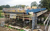 Nach Herstellung der Unterbauten wurde die Brücke in Seitenlage vormontiert und dann in Endlage querverschoben.