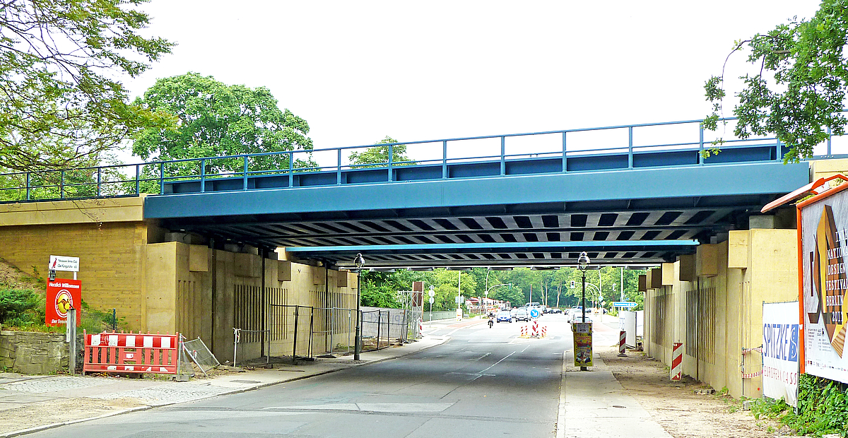 Im Zuge der Gesamtmaßnahme "Grunderneuerung S-Bahn Berlin S7 West" wurden für die Eisenbahnüberführung der Spanischen Allee die Über- und Unterbauten mit jeweils zwei Gleisen für S- und Fernbahn erneuert.