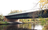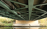Die Widerlager, auf Holzpfählen gegründet, wurden ca. 1928 errichtet. 1955 wurden für den Einbau eines neuen Überbaus die Widerlager angepasst. Der einfeldrige 44,90 m lange und 22,20 m breite Stahlträgerrost trägt eine Stahlbetonfahrbahnplatte.