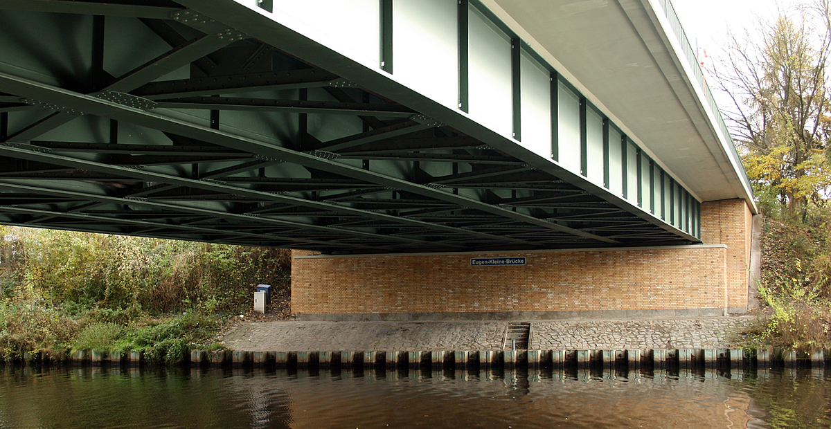 Die Instandsetzung der Brücke beinhaltete die Erneuerung des Brückenbelages mit Neuaufteilung der Geh- und Radwegbereiche, die Erneuerung der westlichen Schleppplatten, Kammerwand und Fahrbahnübergangskonstruktion, den Lageraustausch der westlichen Rollenlager, neuen Korrosionsschutz sowie Instandsetzungen an Beton und Verblendmauerwerk.