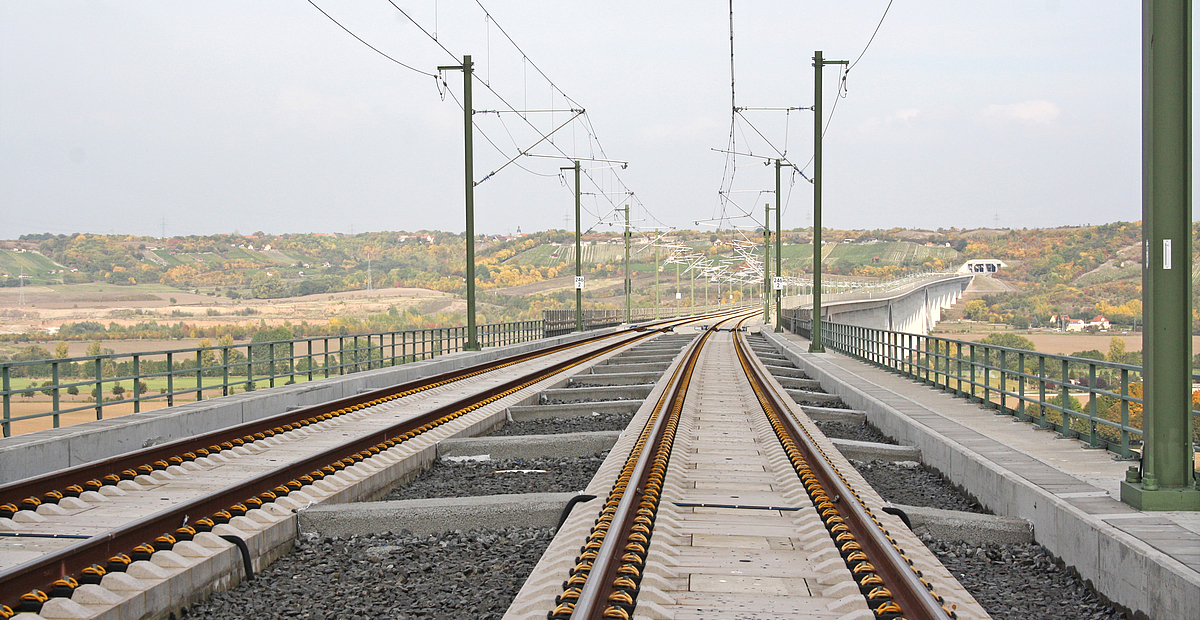 Das Verkehrsprojekt VDE 8, der zweigleisige Aus- und Neubau der Hochgeschwindigkeitsstrecke Nürnberg - Erfurt - Leipzig/Halle - Berlin, ist mit über 500 km die längste Baustelle Deutschlands. Die 230 km lange Teilstrecke Nürnberg - Erfurt - Leipzig/Halle soll durchgehend mit 300 km/h befahrbar sein.