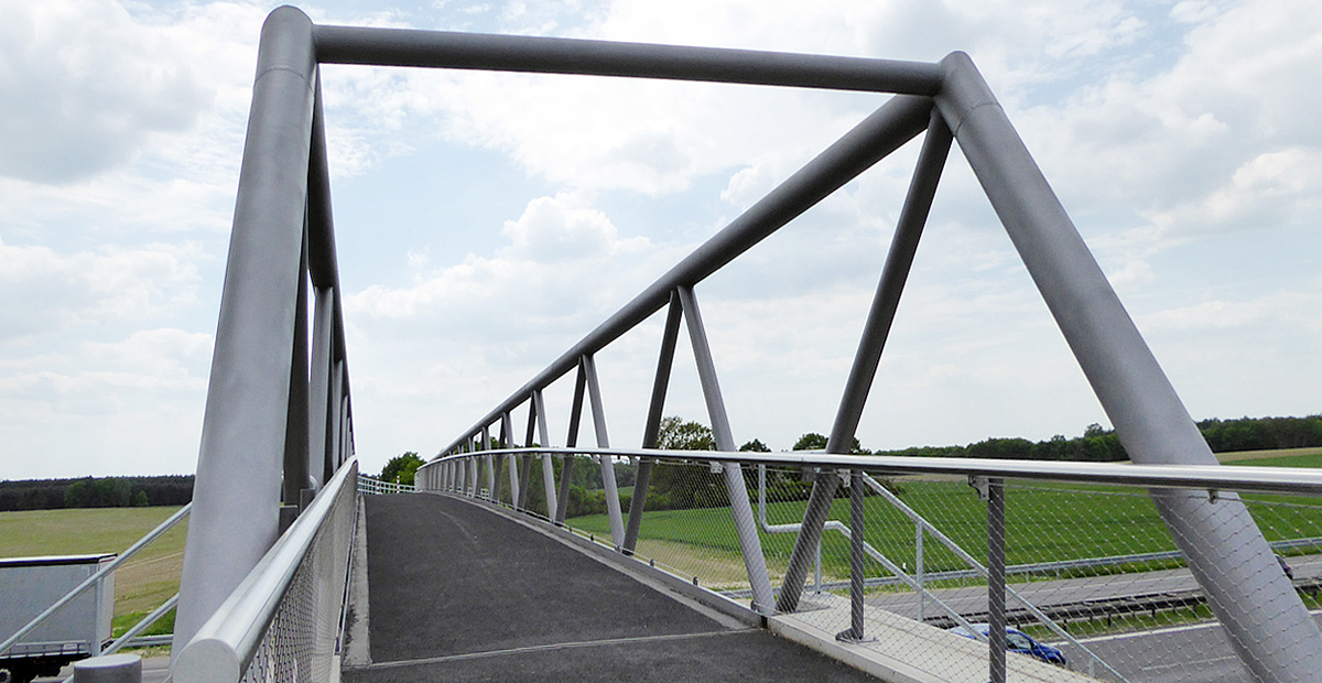Die neue Brücke wurde als Fachwerkkonstruktion aus Rundhohlprofilen in Stahlbauweise mit trogförmigem Querschnitt und orthotroper Fahrbahnplatte ausgeführt. Der einseitig eingespannte Einfeldträger weist eine Stützweite von 44,75 m auf, die Breite zwischen den Geländern beträgt 3,50 m.