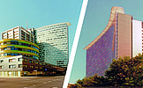 Bürohochhaus mit 20 Geschossen und einer Dachkonstruktion als Membranflügel