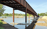 Der Stahlüberbau wird als Durchlaufträger über 14 Felder mit 2 Hauptträgern, 5 Längsträgern und Querträgern ausgebildet.