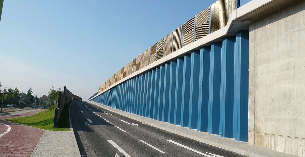 Auf der Brücke und den anschließenden Stützwänden wurden Lärmschutzwände angeordnet. Parallel zur Brücke verlaufen Zu- und Abfahrtsrampen. In der Verlängerung der Flügel der Brückenwiderlager wurden Stützwände errichet. Dabei handelt es sich in weiten Teilen um freistehende, eingespannte Spundwände aus verpressten verzinkten Doppelbohlen ohne rückwärtige Verankerung.